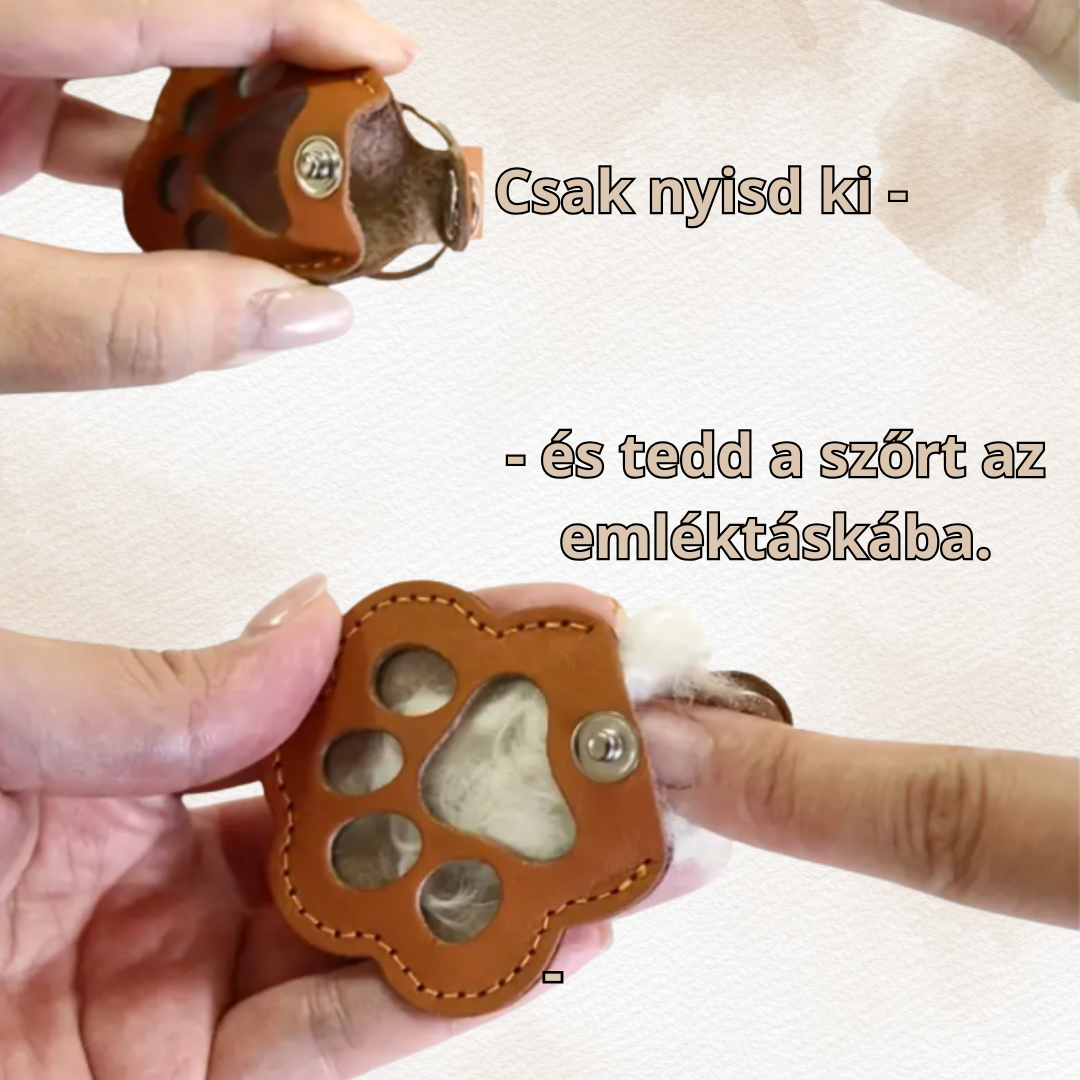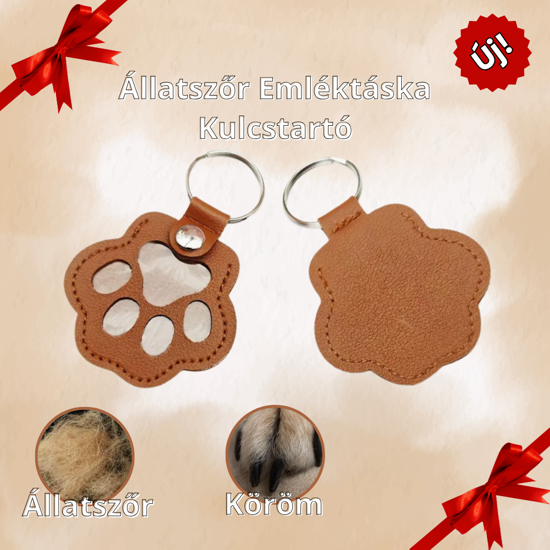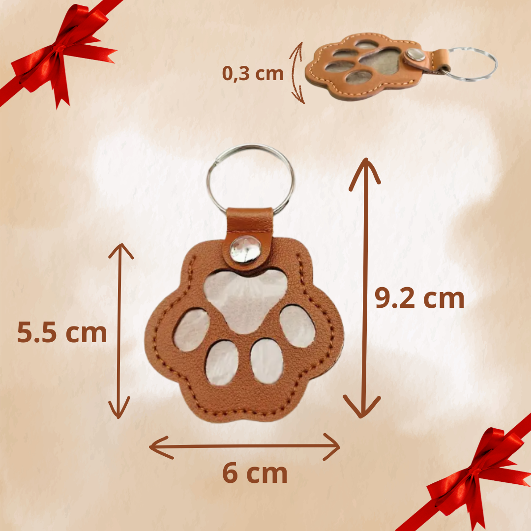 A kulcstartóban egy kis átlátszó rekesz található, ahová elhelyezhetsz pár szőrszálat, egy apró fotót, vagy egy kis emléket kedvencedtől.